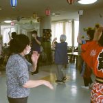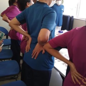 介助する職員の腰痛予防も大事です。「これだけ体操」のレクチャーも行いました。