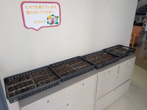 小さな芽が顔を出し始め、日々の変化をみんなで楽しみに見守っています。