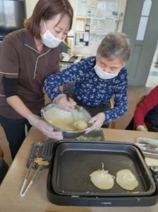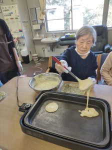 デイケアで**おやつ作り(ホットケーキ)**を行いました🥞